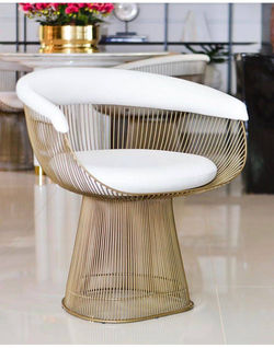 Decorativas, gentis e graciosas são essas algumas das qualidades da Coleção Platner lançada em 1966. As formas exclusivas e harmoniosas são criadas soldando mais cem (100) hastes verticais de aço curvas em armações circulares.